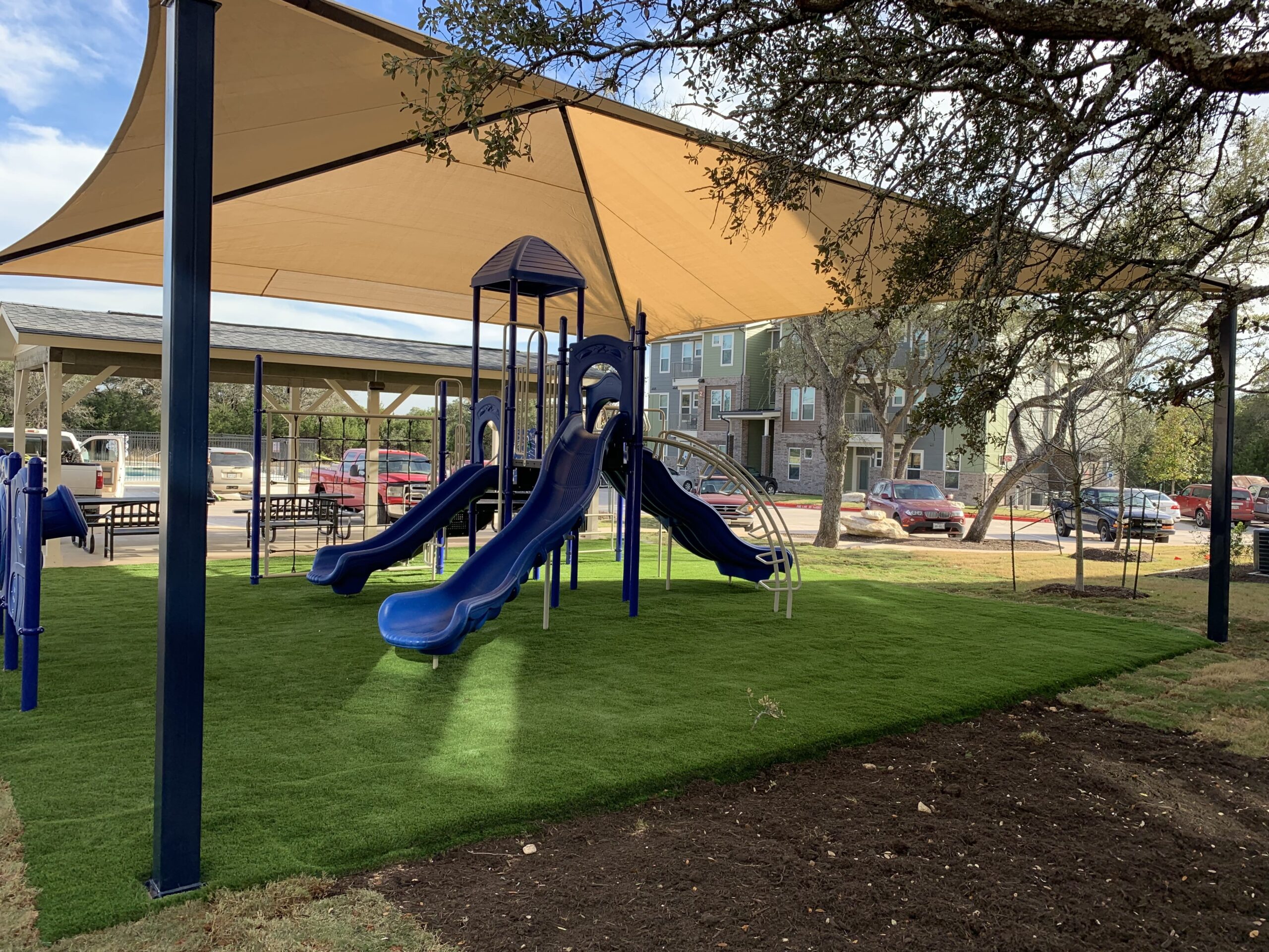 Park Amenities, Playground, Safety Surfaces, Sun Shades