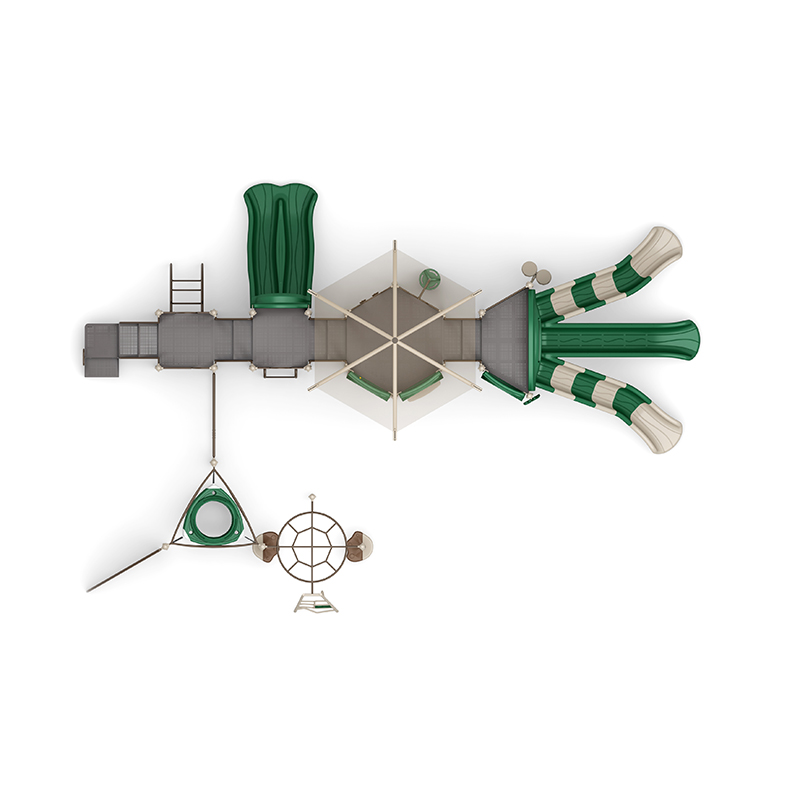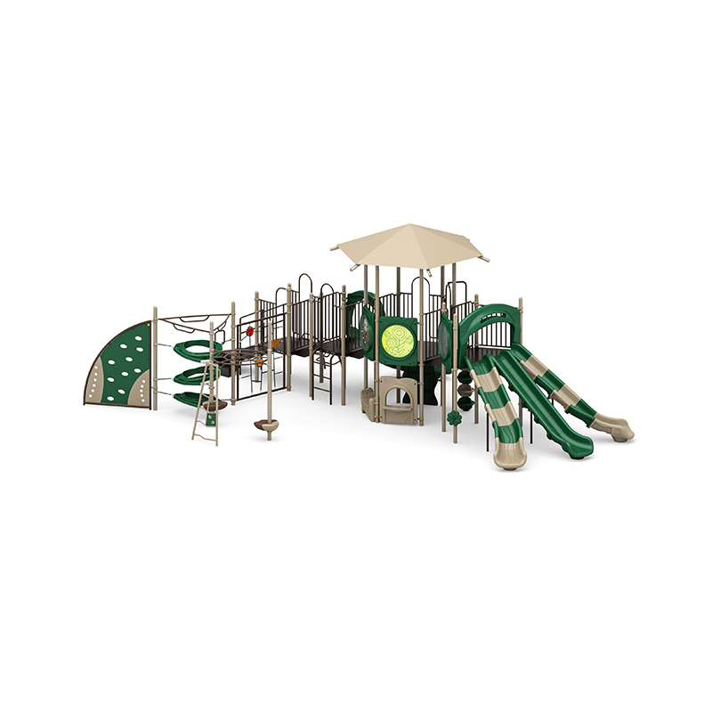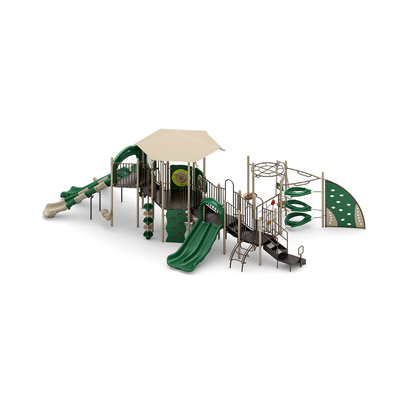 This expansive playground unit delivers nonstop adventure with a wide range of slides, climbers, and interactive play elements. It features a thrilling 6ft triple sectional split slide and a 4ft double slide, providing exciting sliding options for all levels. Climbing activities include a 5ft pod climber, 5ft PE vertical climber, 6ft PE climber with deck, net climber ladder, 4ft straight rung climber, 3ft arch climber, bear step, O-zone climber, and a visually engaging sail PE climbing panel?perfect for promoting physical strength, coordination, and agility. Overhead play is enhanced with the Overhead Challenger, while interactive elements like the rain wheel, bongo drums, four in a row panel, gears panel, window panel, and counter panel (below) engage kids’ senses and imaginations. A saddle seat (below) provides a cozy resting space, and the ADA 3ft transfer station ensures accessible play for all. This unit is ideal for parks, schools, and community spaces seeking a dynamic, inclusive, and feature-rich playground experience.