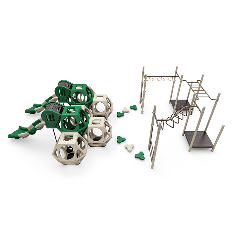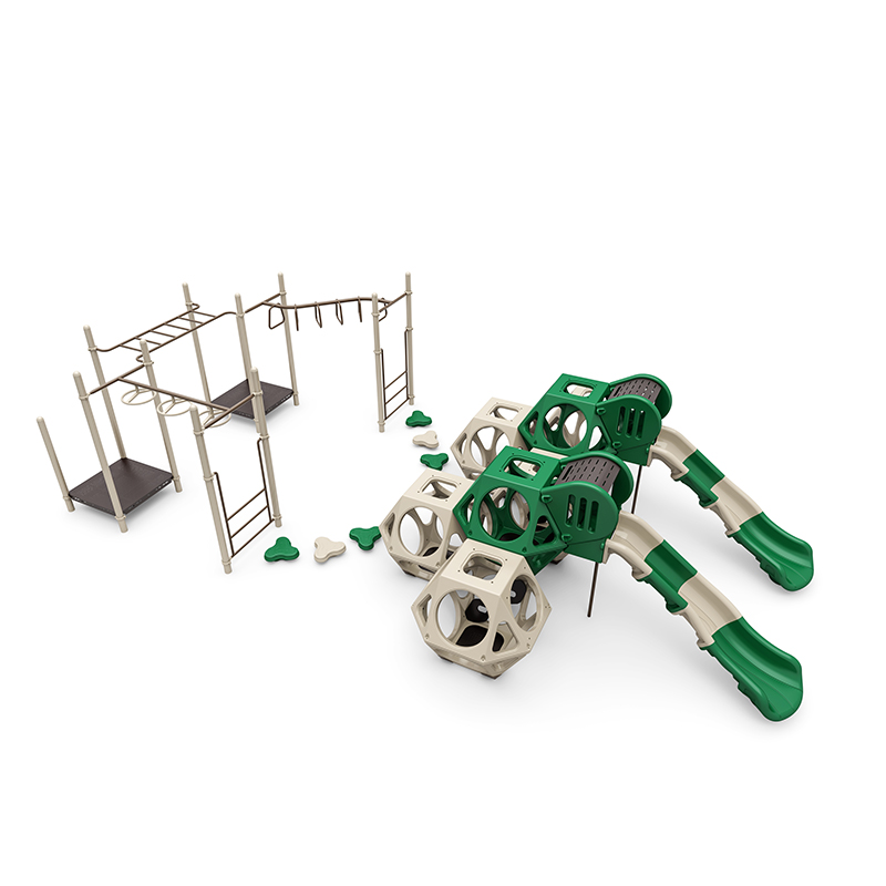 This set of playful and challenging elements is designed to provide endless fun while developing motor skills, balance, and coordination. The Double Trouble Qube adds a unique and exciting obstacle, encouraging problem-solving and spatial awareness. The 6″ Clover Step offers a fun, low-level challenge perfect for little climbers. For more advanced play, the Zig Zag Overhead Rings and Overhead Rotating Rings provide thrilling overhead obstacles that build upper-body strength and agility. The Challenge Ladder adds a vertical challenge, enhancing strength and balance. This dynamic combination of elements will keep kids engaged while promoting healthy physical development in a fun and interactive way.