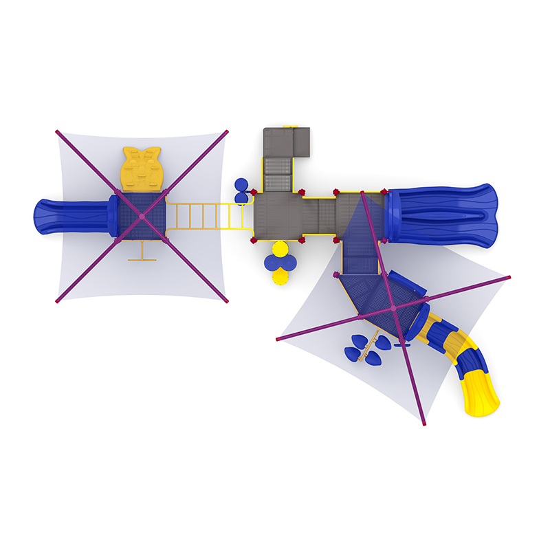 This compact yet action-packed playground unit features a variety of slides, climbers, and interactive play elements designed to keep children active and engaged. It includes a 5ft sectional slide with a 45? right turn, a 4ft double slide, and a 3ft single slide to offer fun for all skill levels. Kids can climb and explore with the 5ft pod climber, 3ft trunk climber, 3ft fish climber, 3ft wing climber, and a challenge ladder that boosts coordination and strength. Sensory play is encouraged through the bongo drums, gears panel, and rain wheel. The ADA 3ft transfer station ensures accessible play for children of all abilities, making this unit an excellent choice for parks, schools, and inclusive play spaces.