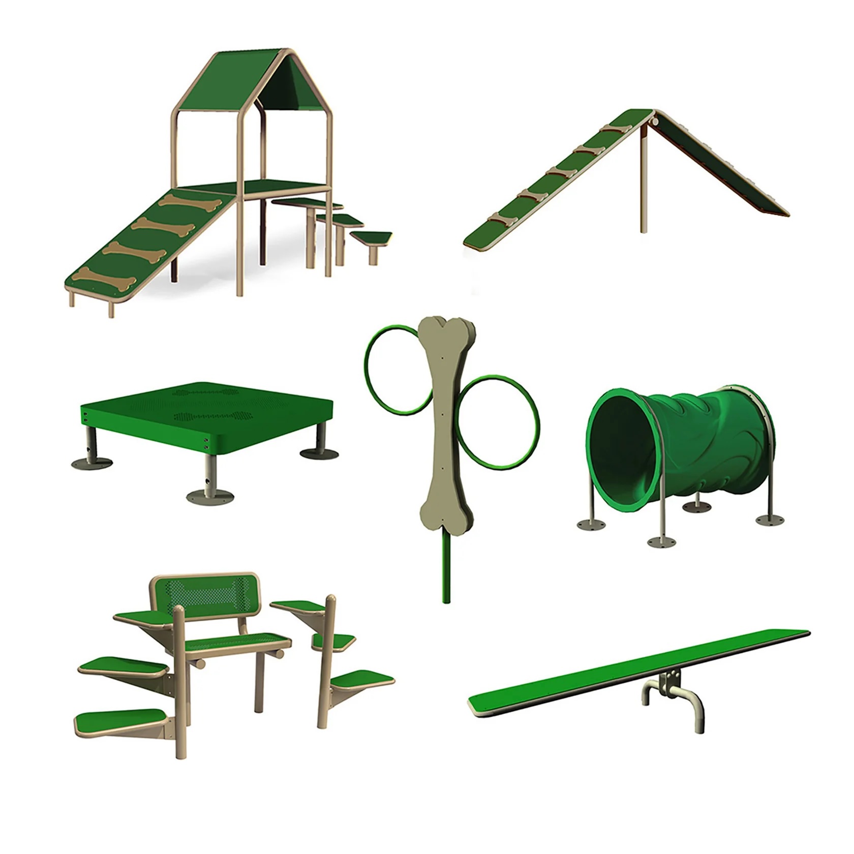 Indulge in Adventure Every Wag of the Tail! Immerse yourself in “The Bone Yard”, a bespoke ensemble crafted for today’s dynamic dog park, seamlessly blending excitement with relaxation. This seven-piece collection creates an arena where every wag, jump, and pause unfolds a canvas of pure joy. Whether it’s the exhilarating rush of the Teeter Totter, the serene moments on the “Me and My Pal” Bench, or the cozy retreat in the Canine Condo, “The Bone Yard” guarantees an unforgettable chapter in every dog’s journey.