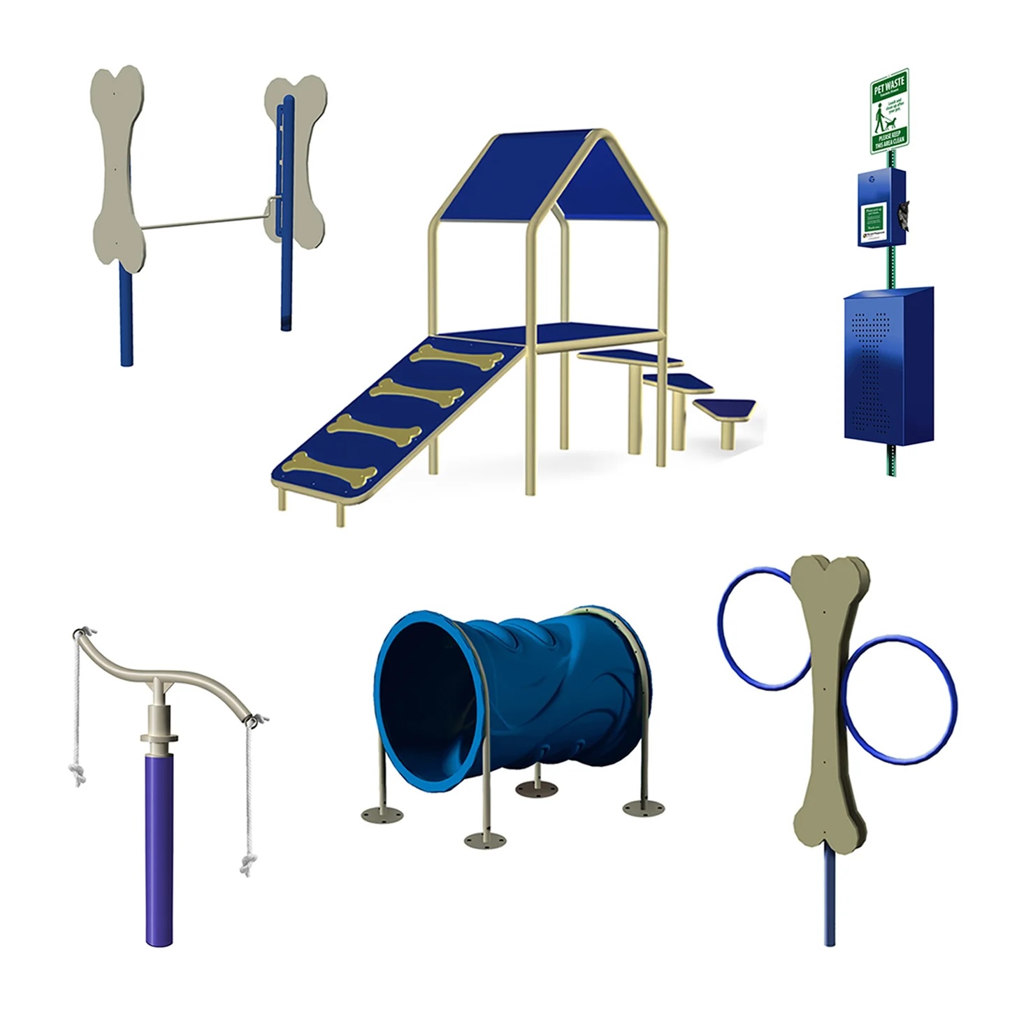 Experience a symphony of joy with the Tug Around, the epicenter of glee and playful duels, where two ropes swirl endlessly, transforming each playtime into a merry festivity. Traverse the Tunnel Run and let their excitement reverberate through this playful passage as they dart in and out, eagerly anticipating the next adventure. Add a dash of aerial flair with the Hoop Jump, where rookies and seasoned leapers alike take flight, showcasing their agility and enthusiasm. Seek respite in the Canine Condo, a cozy nook for well-deserved breathers, offering a tranquil space for relaxation or simply watching the world go by. Tailor challenges for every pup with the Adjustable Jump, setting the bar to suit every size and witnessing them conquer heights with boundless joy. And with the Pet Waste Station, ensure a responsible touch to playtime, making cleanliness a breeze and ensuring every pet and owner can enjoy a hygienic experience throughout their park visit.